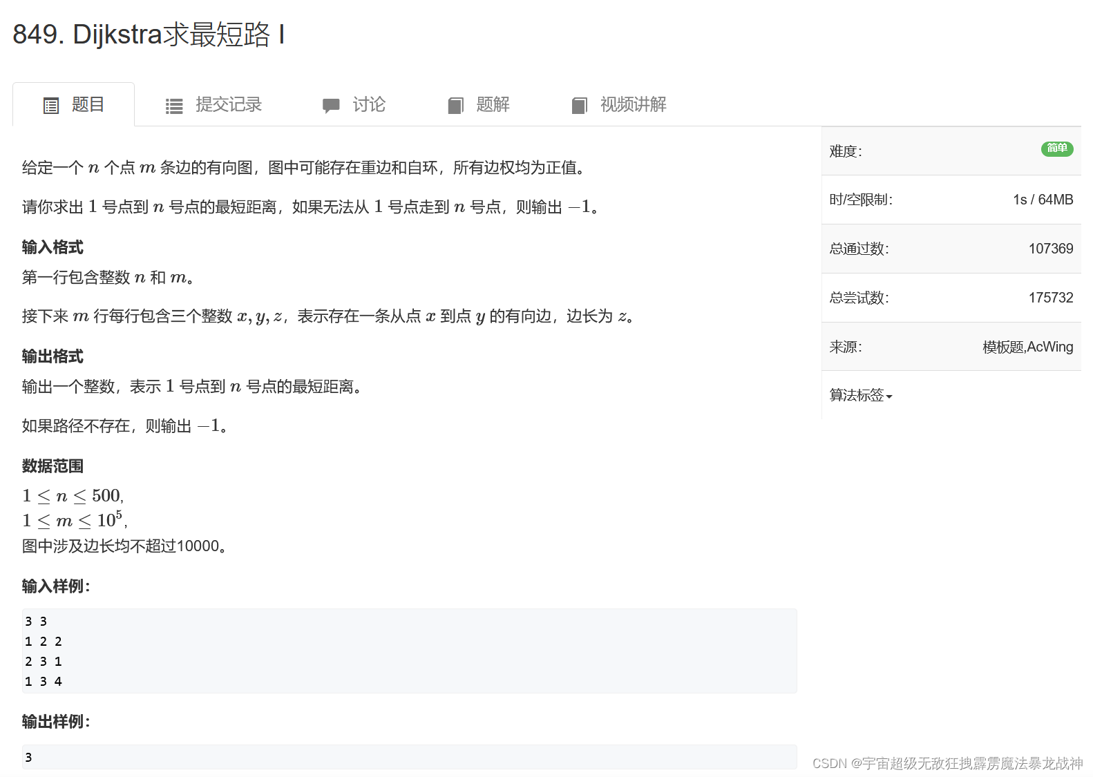 int t = -1; // 将t设置为-1,因为Dijkstra算法适用于不存在负权的图,t存的是当前访问的点