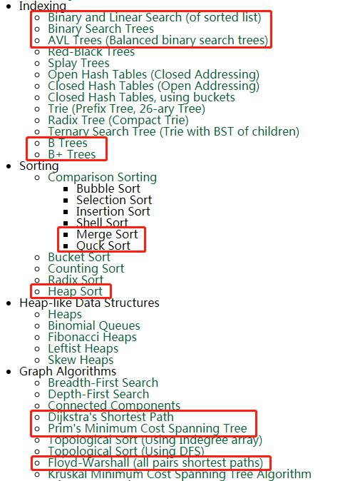 这只截取了部分,可以看到其中包含了各种树(二叉搜索树、红黑树、B树)、各种排序(归并排序、快速排序、堆排序)以及各种图算法(最短路径、最小生成树算法)。基本上涵盖了我们平时常见的数据结构和算法。