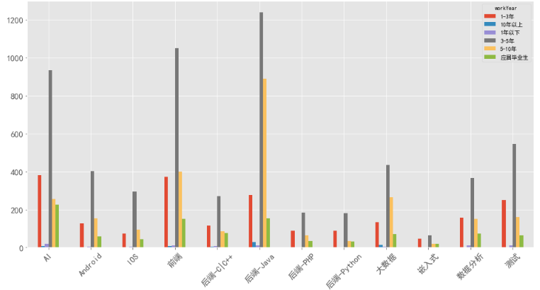 以北京招聘数据为例,目前招聘的各岗位都是以3-5年工作经验为主,1-3年经验的需求量不大。所以,这里也要提醒职场新人,不要轻易跳槽。