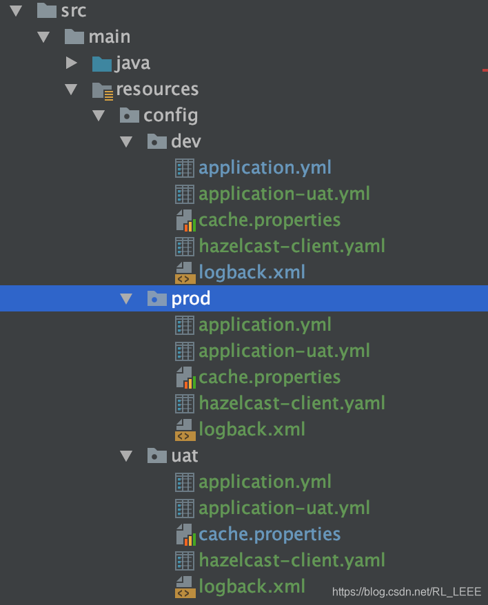 dev、prod、uat三个环境,使用三个目录加以区分。