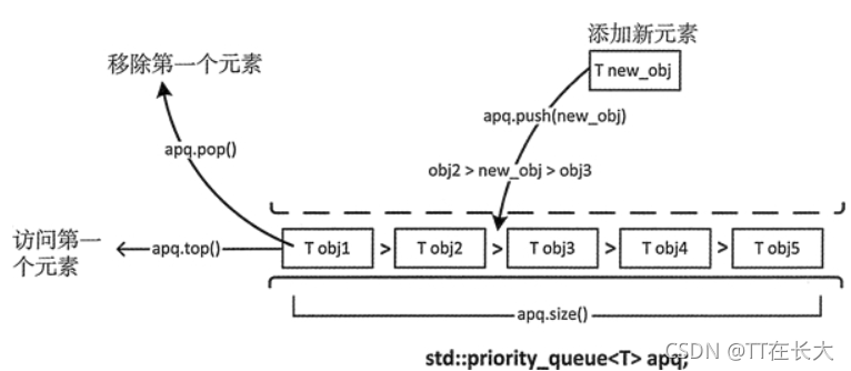 优先队列是一种容器适配器,根据严格的弱排序标准,它的第一个元素总是它所包含的元素中最大的。此上下文类似于堆,在堆中可以随时插入元素,并且只能检索最大堆元素(优先队列中位于顶部的元素)。优先队列被实现为容器适配器,容器适配器即将特定容器类封装作为其底层容器类,queue提供一组特定的成员函数来访问其元素。元素从特定容器的“尾部”弹出,其称为优先队列的顶部。