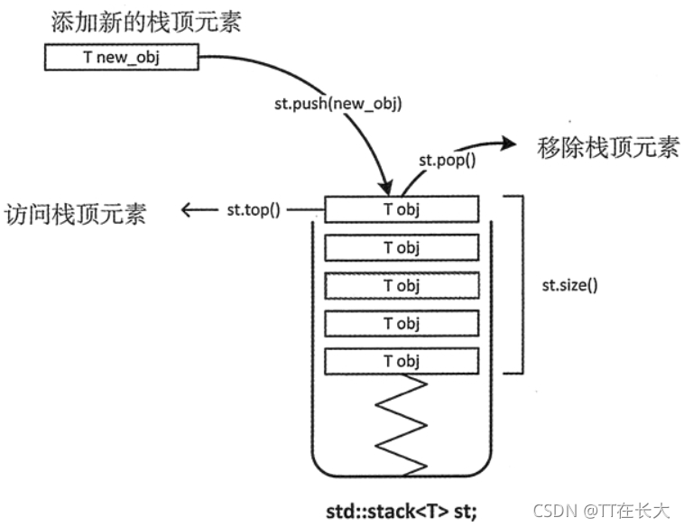 的成员函数来访问其元素,将特定类作为其底层的,元素特定容器的尾部(即栈顶)被压入和弹出。