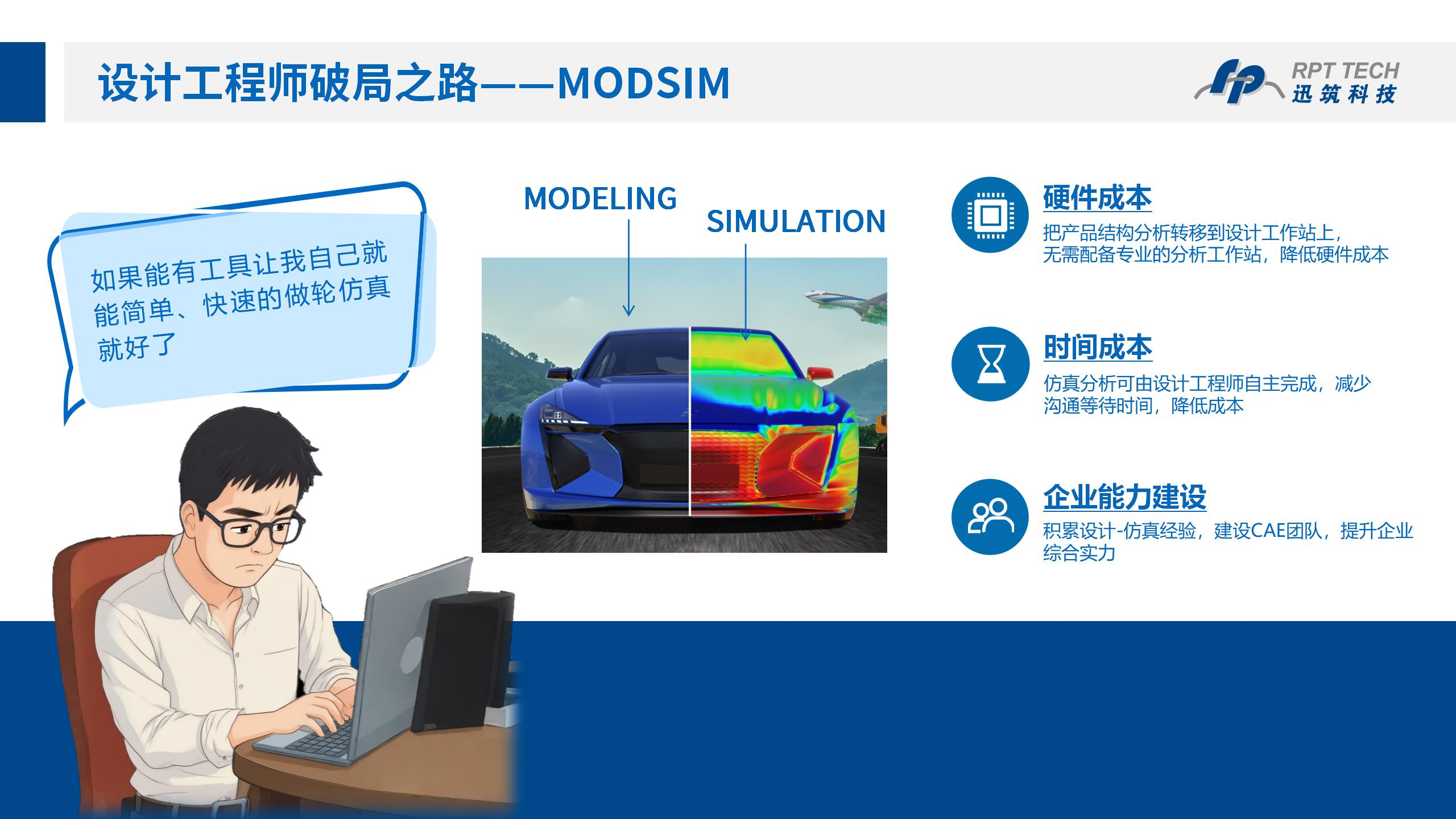 MODSIM 是一种结合 CAD&CAE 的建模(MODeling)与仿真(SIMulation)解决方案,可在产品开发的早期阶段为设计工程师提供帮助。