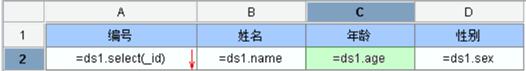 现在要查询 student 表中年龄大于传入参数的数据,那么更改脚本数据集的 A2 单元格为: