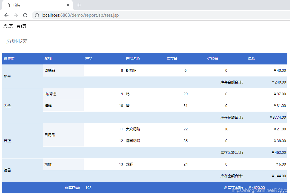 以设计器内置 demo 应用为例,放置到 reportJsp 下,访问 url 结果(xml 路径下有对应的报表模板)如下