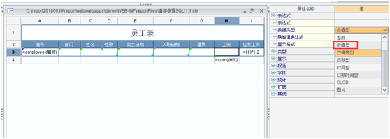 选中工资所在单元格 H3,右侧属性 -- 表达式 -- 数据类型,选择数值型即可。