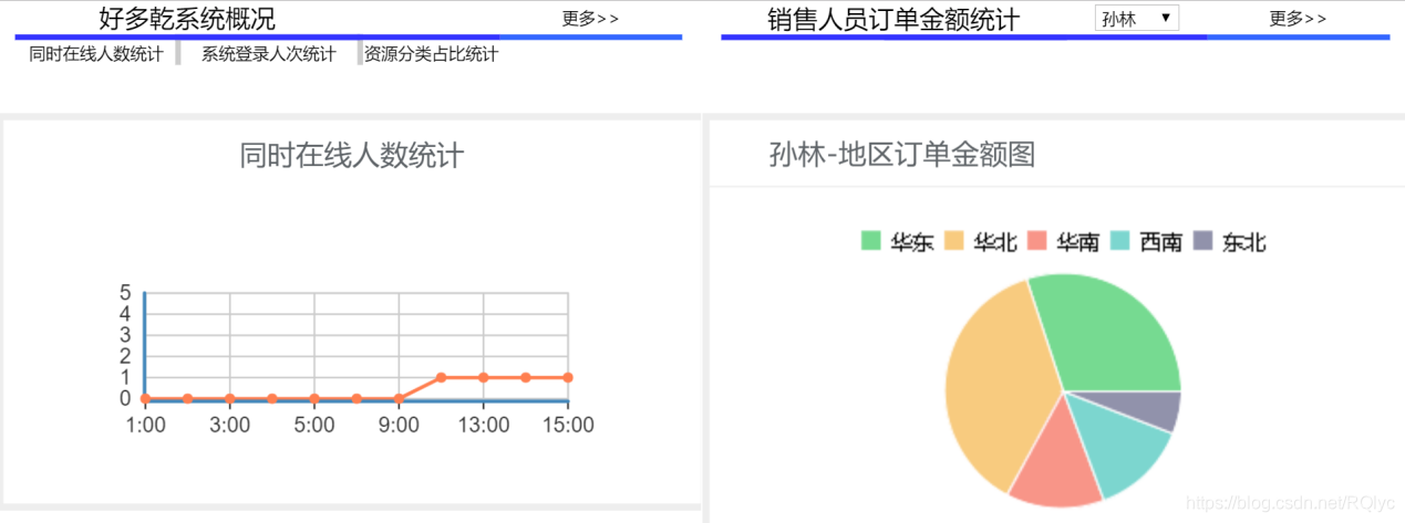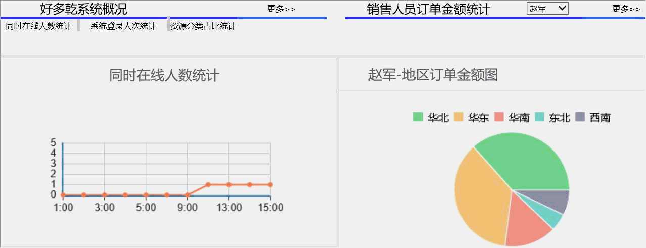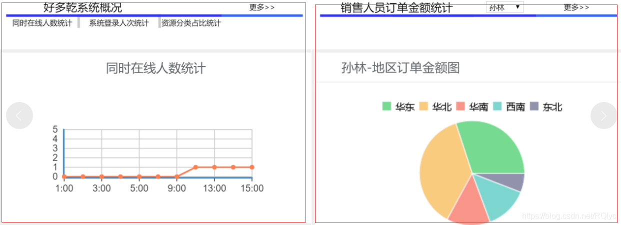 下面是我近期遇到的一个客户实际要求的效果,在一个列表页面中有多个模块,每个模块又可以以多 TAB 页的方式切换不同的报表,并且每个区块都有自己独立的查询过滤条件。在查询条件发生变化的时候,只是该区块刷新,而不需要刷新整个页面。