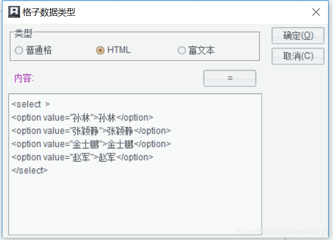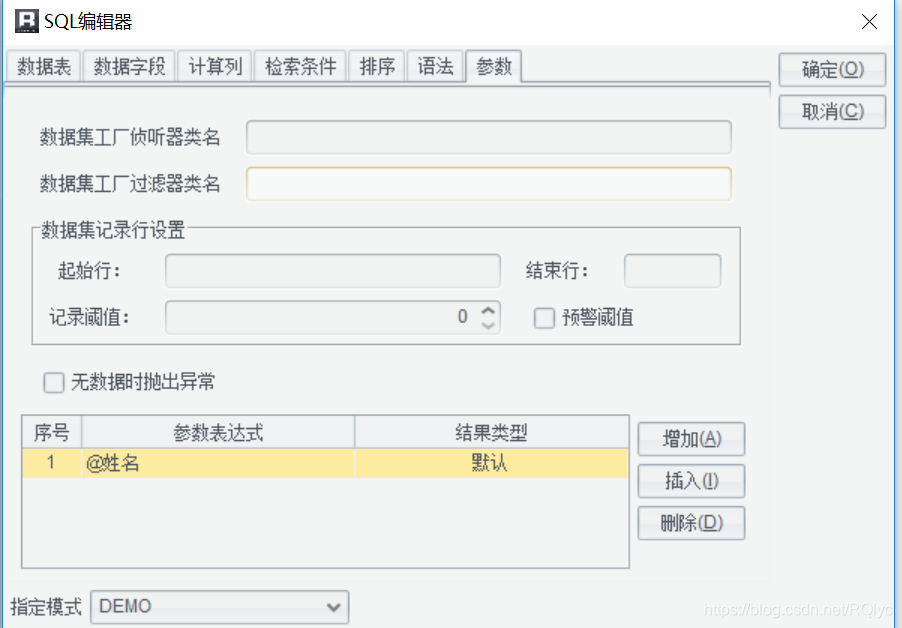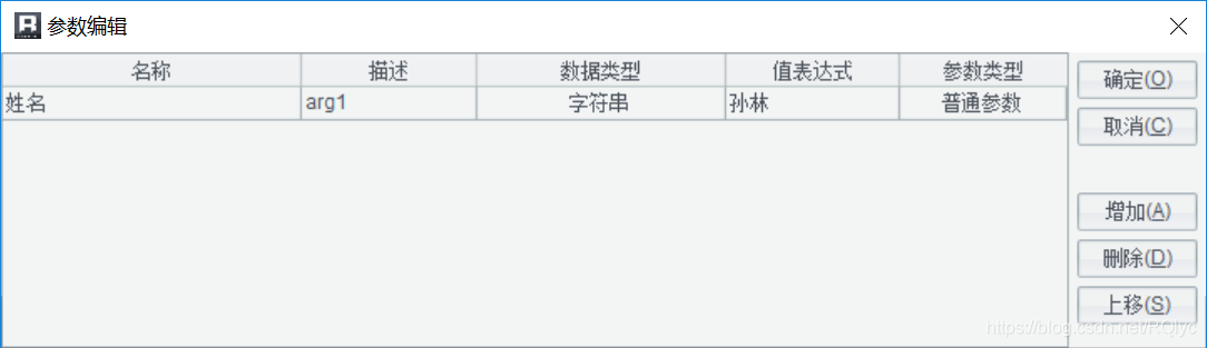 数据报表中定义了一个参数,参数名为“姓名”,类型为字符串