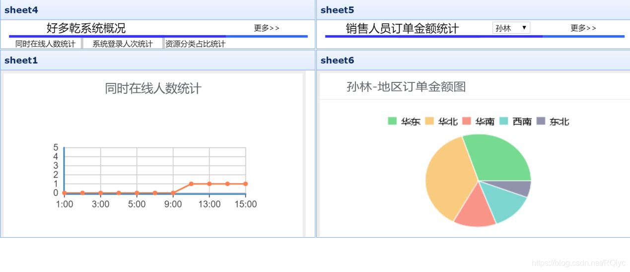 通过以上设置,我们就已经完成了不同区块多张报表以 TAB 页形式切换,并且区块查询条件相对独立的需求,当每个区块的查询控件值发生变化,下方的数据就会动态的变化的效果。