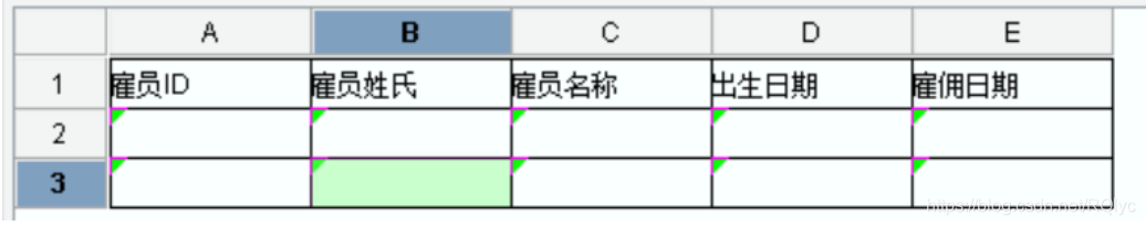 B2 的语句:>EMPLOYEE=A1.query(“SELECT EID,NAME,SURNAME,BIRTHDAY,HIREDATE from EMPLOYEE”) 从 demo 库中查询 employee 表的数据,并将结果写到 employee 对象中
