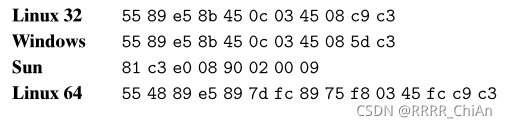 可以发现码字是不同的,不同的机器使用不同且不兼容的指令和编码。即使是运行不同操作系统的相同处理器也有不同的编码约定,因此是不兼容二进制的。二进制代码很少能在不同的机器和操作系统组合之间移植。