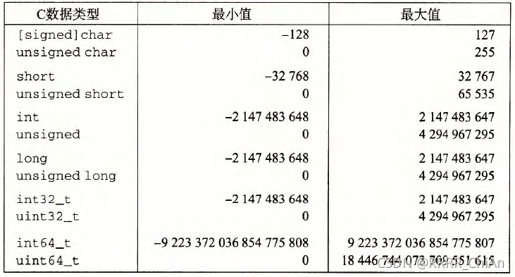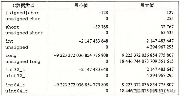 以C语言为例,32和64位程序的不同类型的整型数据取值范围如下所示: