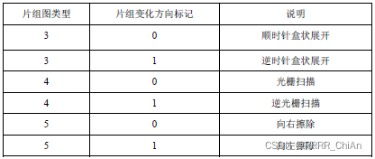 解码器在对每个片解码之前,首先需要基于当前有效图像参数集和需解码的片头,产生“宏块片组映射图”变量MbToSliceGroupMap,该变量对于一个接入单元中的所有片均有效。当num_slice_groups_minus1等于1而且slice_group_map_type等于3、4或5时,片组0和1的大小和形状根据下表由“片组变化方向标记”slice_group_change_direction_flag确定。