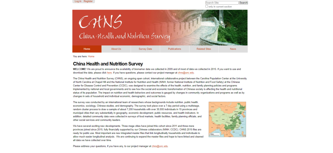 旨在研究健康、营养、以及国家和地方政府实施的计划生育政策和项目,并了解中国社会的社会和经济转型如何影响其人口的健康和营养状况。