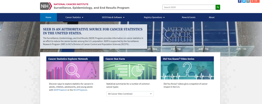 SEER 可提供癌症统计信息,数据库中的肿瘤可分为 9 类:乳腺、结肠 & 直肠、其他消化系统、女性生殖、淋巴 & 白血病、男性生殖、呼吸系统、泌尿系统及其它尚未确定的类型。目前,SEER 数据库主要针对癌症预防和控制,以及协助与老年人有关的流行病学和卫生服务研究。