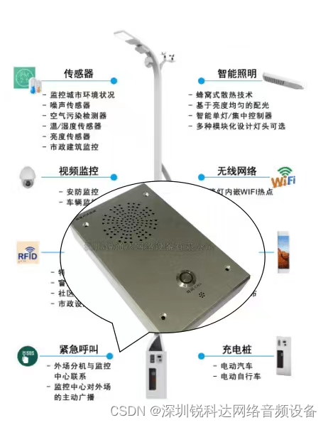 深圳锐科达智慧城市智慧灯杆IP网络广播紧急求助系统
