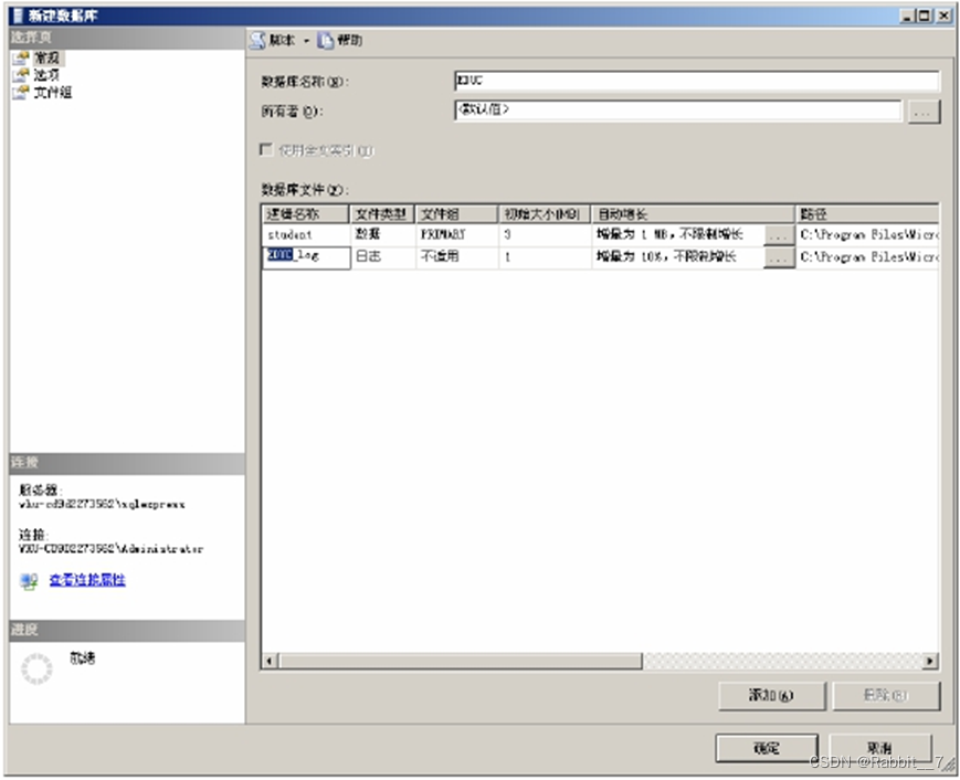 - 修改数据库名,数据库逻辑名,初始大小,增长方式等