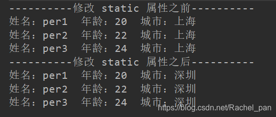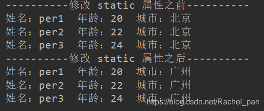 static String country = "北京"; //定义 static 属性,此属性为所有对象共享