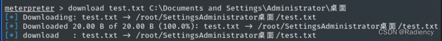 输入download test.txt(要下载的文件) C:\Documents and Settings\Administrator\桌面(文件路径)