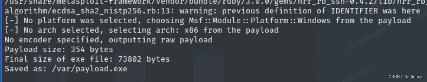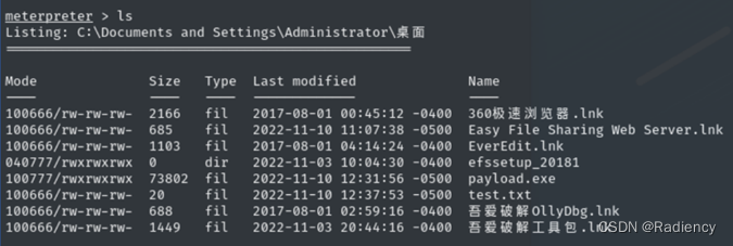 将在file system/var目录下生成payload.exe文件,并把这个生成的被控端复制到靶机中