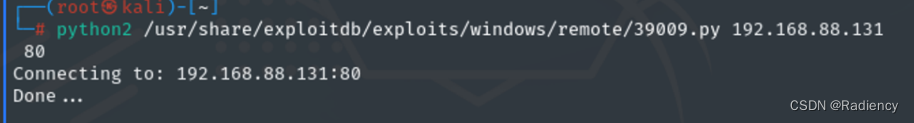4.输入命令 python2 <Path> (上一步所得的路径) 192.168.10.128(靶机ip) 80(easy file sharing的端口)
