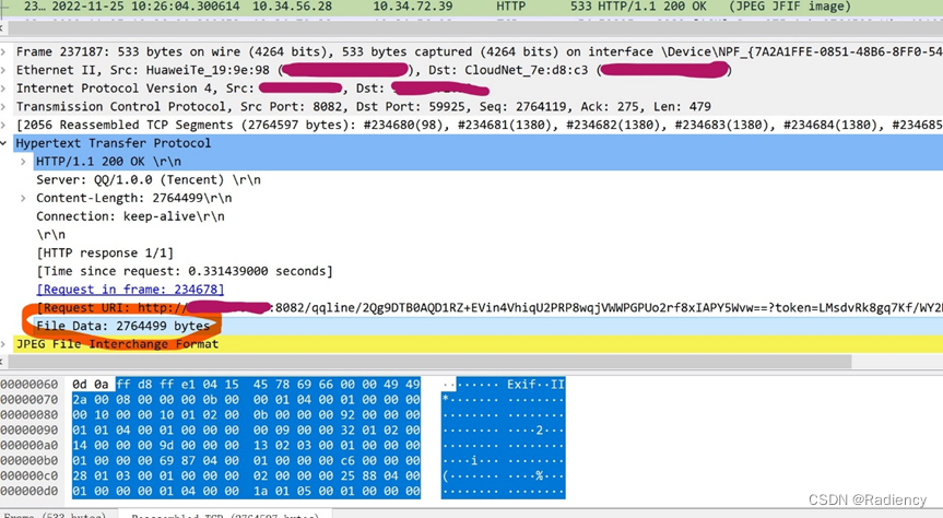找到了一个特别的数据包,看备注信息,推测是用HTTP协议传输了一张Jpeg(jpg)格式的图片