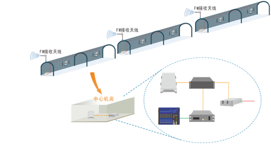 智慧高速公路之隧道调频应急广播系统:主要通过将隧道外的调频广播信号引入,使得车辆通过长隧道甚至超长隧道时电台广播收听不中断。同时当隧道内突发车辆故障时,能迅速切断广播电台信号,插播紧急语音广播,将紧急情况及时通知给车内的人。