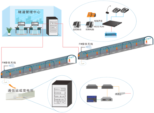 高速公路紧急电话有线广播调频广播系统是集紧急电话、有线广播和FM调频应急广播为一体的综合性系统,它能快速的为高速公路隧道内的交通事故,自然灾害等突发事件提供准确、有效的语音广播与帮助。