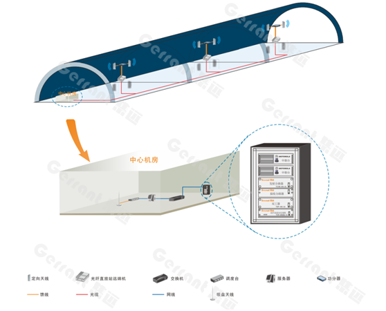 由于综合管廊为狭长型结构,为降低成本和减小传输损耗,较适合采用光缆进行主干信号传输,对于长度仅为几公里的隧道可采用普通光纤直放站,并选用定向天线或漏缆进行覆盖。