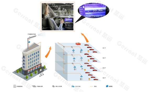 由于在地下空间电磁信号被屏蔽,FM调频广播信号根本无法穿透进地下停车场,导致车辆进入地下停车场后就无法再收听车载广播节目,这就给车主带来极大的不便。