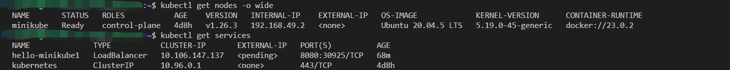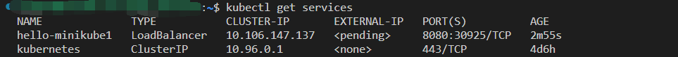 deployment hello-minikube1 --type=LoadBalancer --port=8080