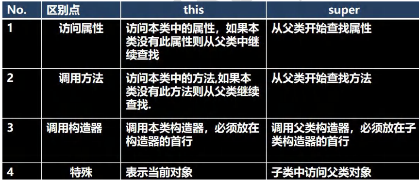 super 在使用时,必须放在构造器第一行(super 只能在构造器中使用)