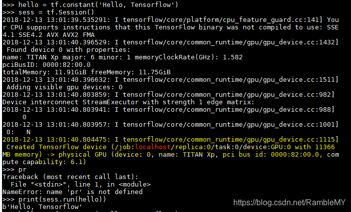 注意tensorflow的版本要与CUDA匹配,我是CUDA10,下载了tensorflow1.12
