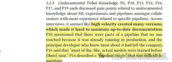 - 未记录的部落知识:随着 ML 系统和团队的发展,有关特定模型、管道和数据复杂性的知识可能会集中在少数人手中,尤其是当这种“部落知识”可能造成瓶颈和依赖关系,阻碍协作并使系统难以随着时间的推移而维护和发展时。如果关键人员升职、解雇或因其他原因离开团队,这将成为一个巨大的问题。为了避免这种情况,请优先考虑文档、知识共享和交叉培训,以确保整个团队都可以访问关键信息。