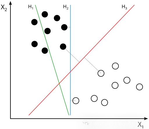 H3 表示硬边界 SVM 如何对数据集进行分类。