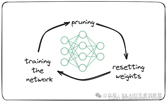 - 重复:重复此过程,直到原始网络达到所需的稀疏度,或者修剪后的网络不再能达到未修剪网络的性能。
