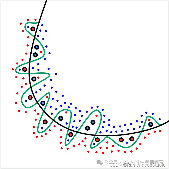 一篇重要的论文《寻找真正的归纳偏差》 [12] 通过使用线性可分数据集拟合预测器进行实验。作者展示了使用梯度下降且没有正则化的逻辑回归如何固有地将解决方案偏向最大边距分离器(也称为硬边距 SVM)。这是梯度下降的一个有趣且令人惊讶的行为。因为即使损失和优化不直接涉及任何鼓励边距最大化的术语(如您在支持向量机中发现的术语),梯度下降固有地将解决方案偏向最大边距分类器。