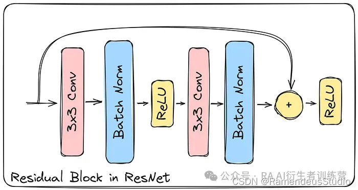 Resnet 中使用的残差块 (Residual Block) 的概述以及其中 Batch Norm 的使用。(作者撰写)