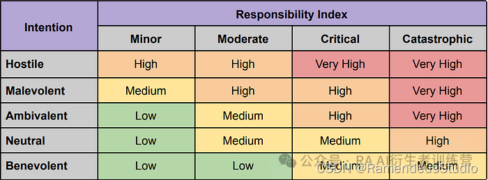 在与业内众多利益相关者交谈时,大多数人都提出了用指标来确定快速响应对的危害性的想法。我开始将这个概念作为责任指数来分享。与传统风险管理矩阵的严重性指数类似,责任指数也有类似的轻微、边际、关键和灾难性成分。虽然该指数可以衡量响应的严重性,但仅根据严重性进行衡量可能会受到用户对严重性的主观解读。责任正确地传达了信息,解决了诸如言语毒害、有害语言、破坏性、负面含义、恶意对话、恶毒词语、语言伤害、攻击性语言、有害言论和辱骂性语言等概念。