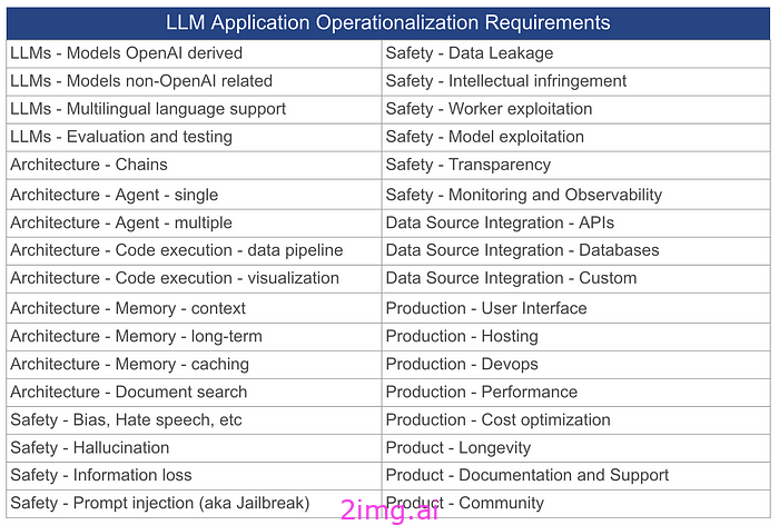 在启动使用大型语言模型 (LLM) 的应用程序之前应考虑一些关键领域。