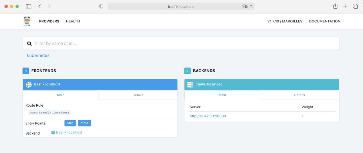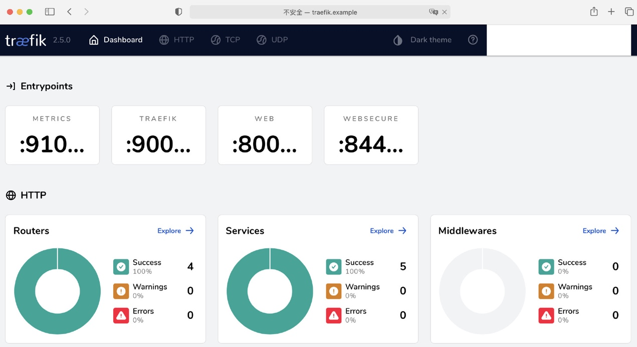 部署成功后,可通过 http://traefik.example/dashboard/ 访问 Dashboard:
