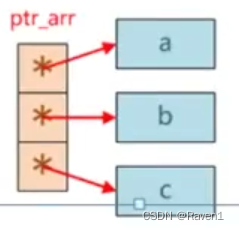 指针数组还是数组,只是数组中每个元素是一个指针: