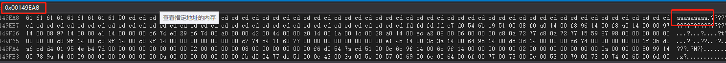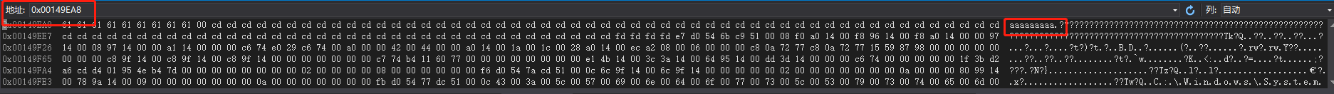 释放之前p指向内存空间内容,以及name内存空间的内容: