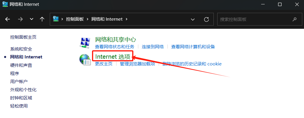 3. 打开Internet选项