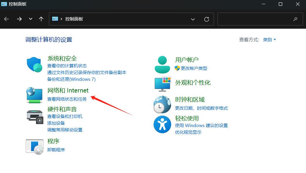 2. 打开网络和Internet