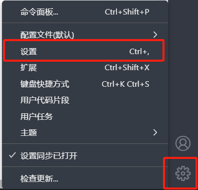 6. 在vscode 右下角点击“设置”(你也可以用任何别的方式进入)