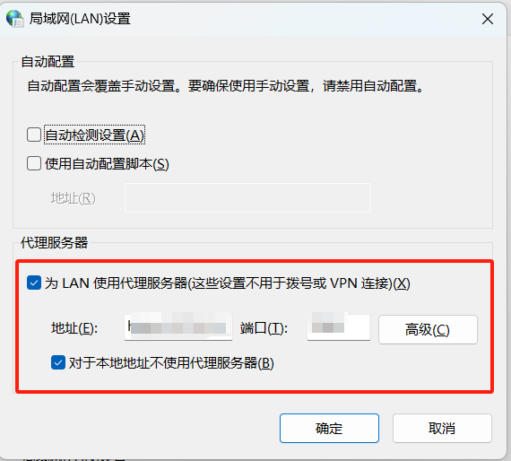 5. 勾选为 LAN 使用代理服务器(这些设置不用于拨号或 VPN 连接)(X),记住自己的端口(T)数字,例如为8888