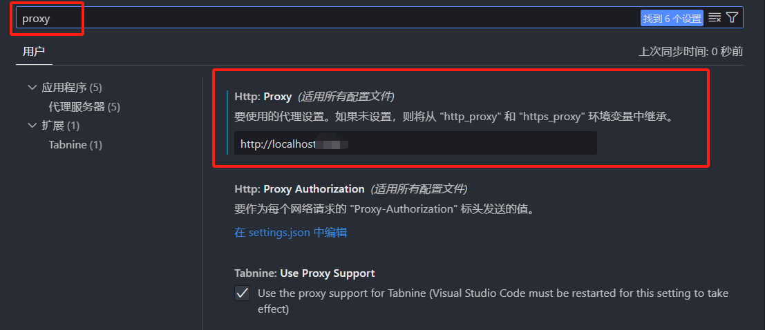7. 输入proxy,在我框中的地方输入 http://localhost:刚刚的数字,如8888。此时退出vscode重新进入即可。