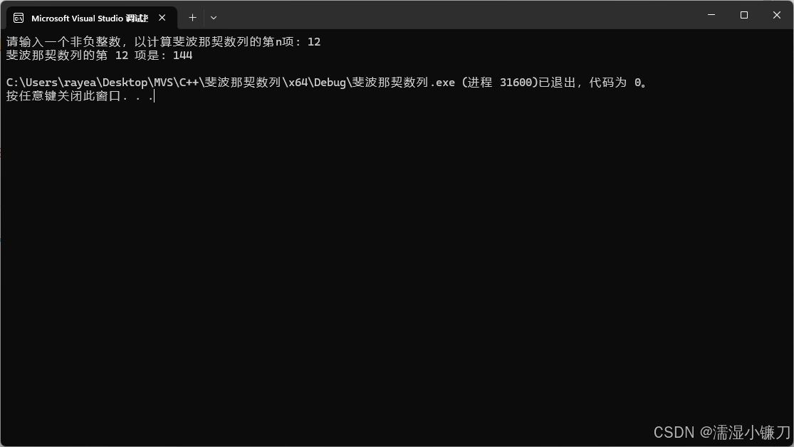 cout << "斐波那契数列的第 " << n << " 项是: " << fibonacci(n) << endl;
