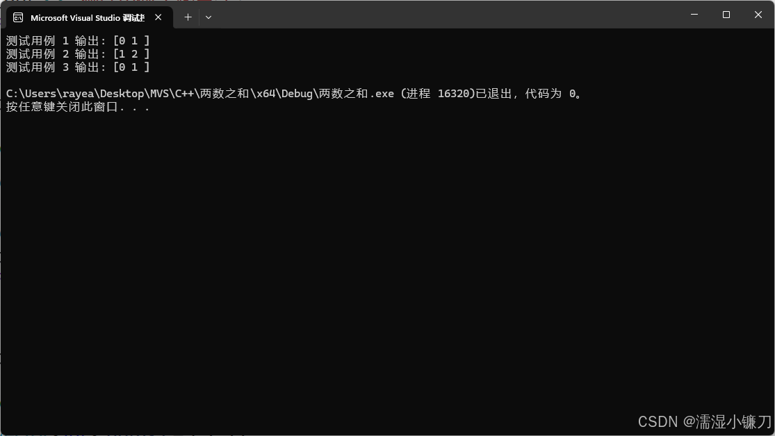 编写一个函数 twoSum,该函数接收一个整数向量 nums 和一个整数 target,返回一个包含两个整数的向量,表示在 nums 中和为目标值 target 的两个数的索引。